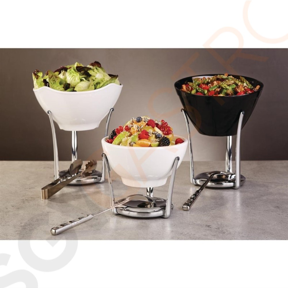 Eine interessante Melaminschale in schwarz, mit einem abgeschrägten Rand und Kragen-Design für leichtes Stapeln. Antirutschfüße für mehr Stabilität. Kombinierbar mit den King-Buffetständern GF107 und GF108.