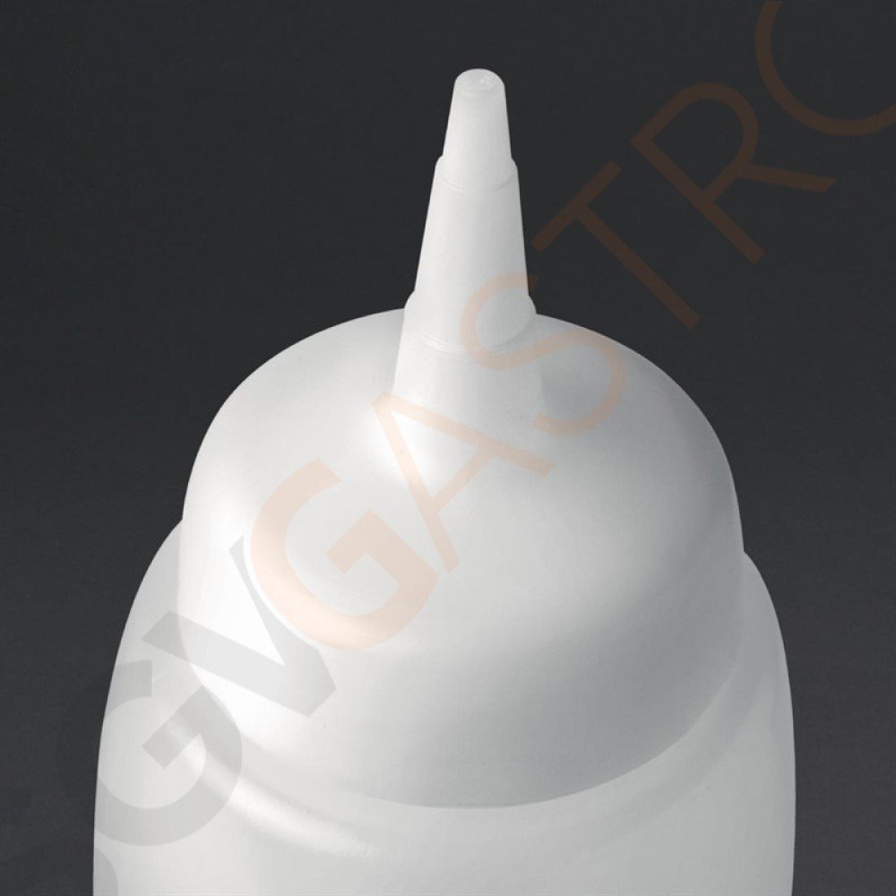 Klare Flaschen für das Anbringen von ununterbrochenen Soßenlinien, mit austauschbaren Düsen.