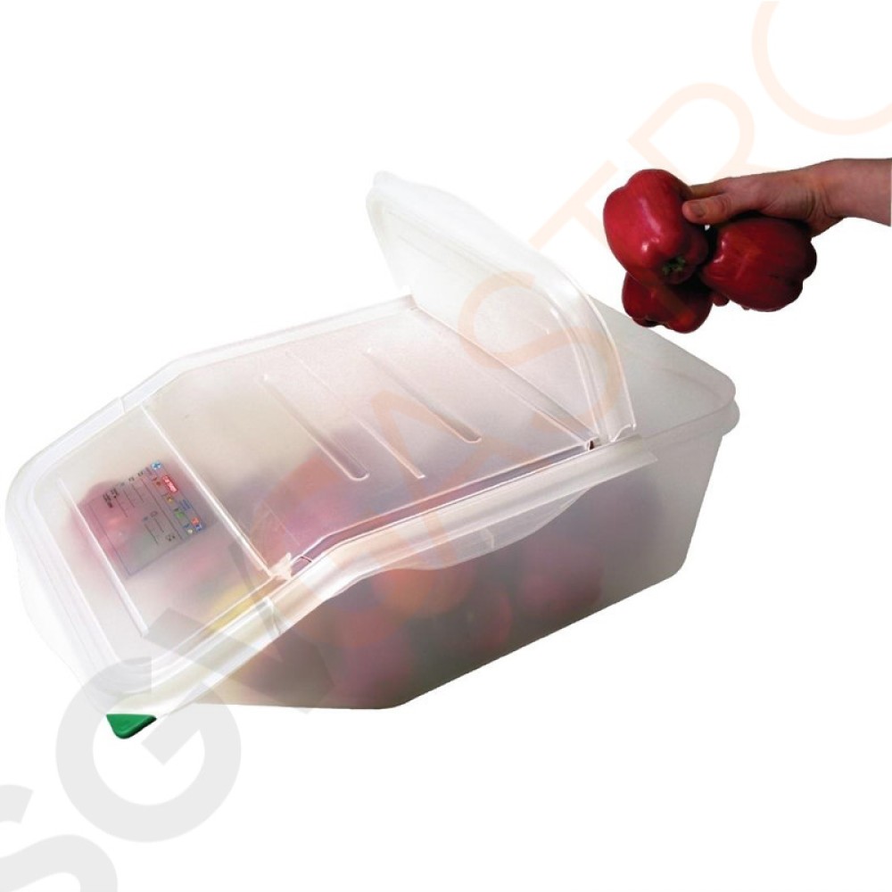 Stapelbare Behälter. Nachdem FIFO (First In, First Out)-System. Geschirrspülergeeignet und mit Farbkodierungsclips ausgestattet.