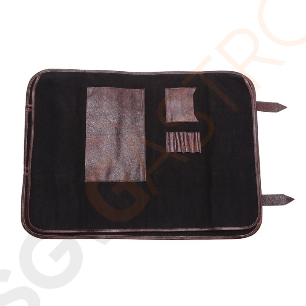 Praktische und professionelle Messertasche aus 100% robustem Leinen. Mit Visitenkartenfach und Steckplatz für Kugelschreiber sowie Fächer für 17 Messer.