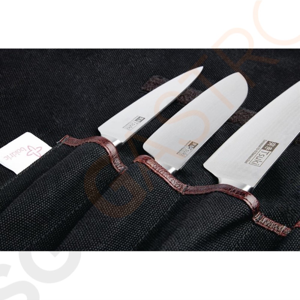 Boldric Messertasche aus schwarzem Segeltuch 6 Fächer Canvas Messertasche. Für 6 Messer. Messer separat erhältlich