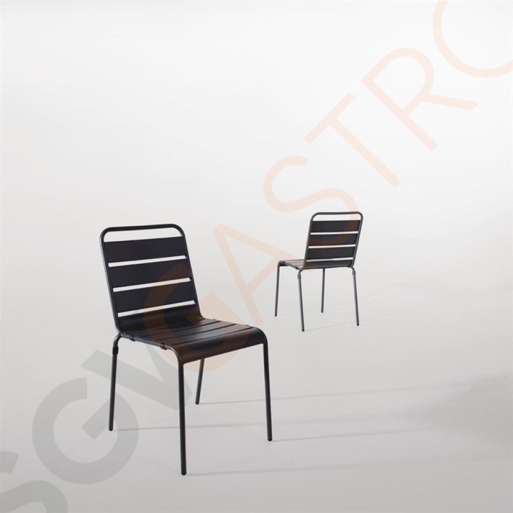 Pflegeleichte und witterungsbeständige farbige Bistrostühle mit abfallendem Sitz für extra Komfort. Perfekt für Terrassen, Innenhöfe, Cafés und Restaurants.