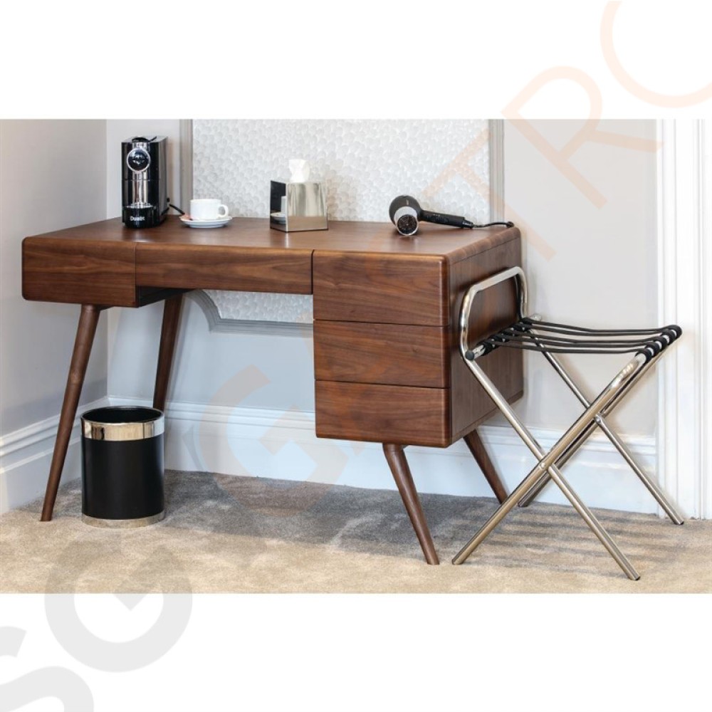 Attraktive Papierkörbe im Ledereffekt mit epoxidpulverbeschichtetem Stahlkörper und abnehmbarem Rand, um Müllbeutelrand zu verbergen.