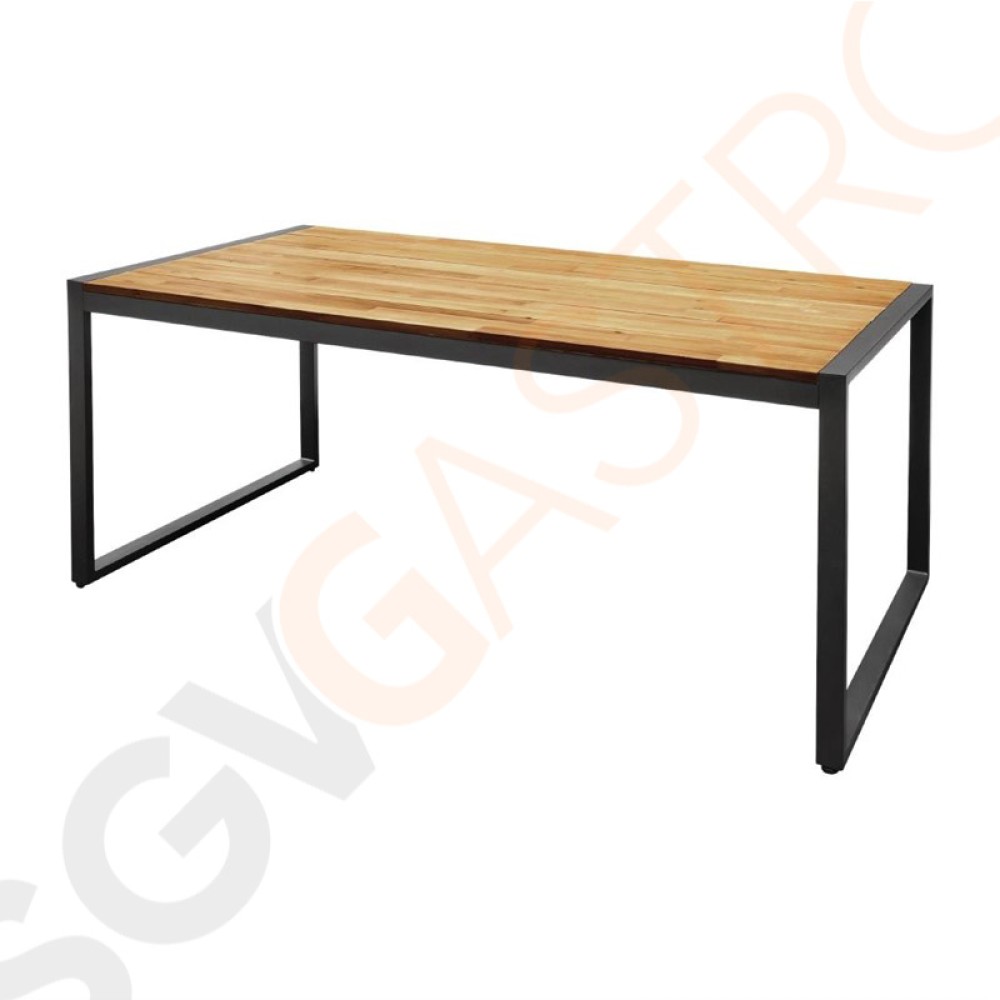 Bolero rechteckiger Stahl- und Akazienholztisch im industriellen Stil - Stahlgestell | Tischplatte aus Holz | Größe: 74(H) x 180(B) x 90(T)cm