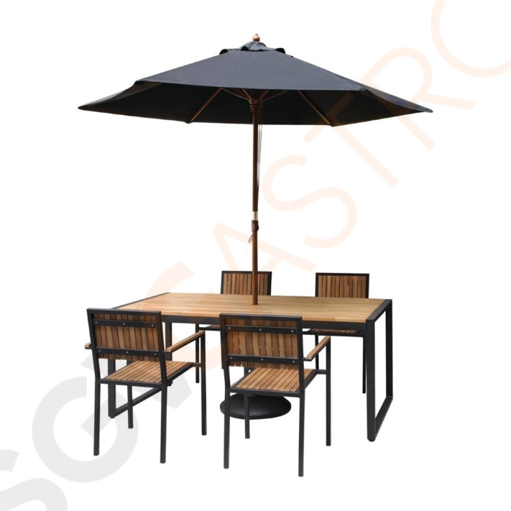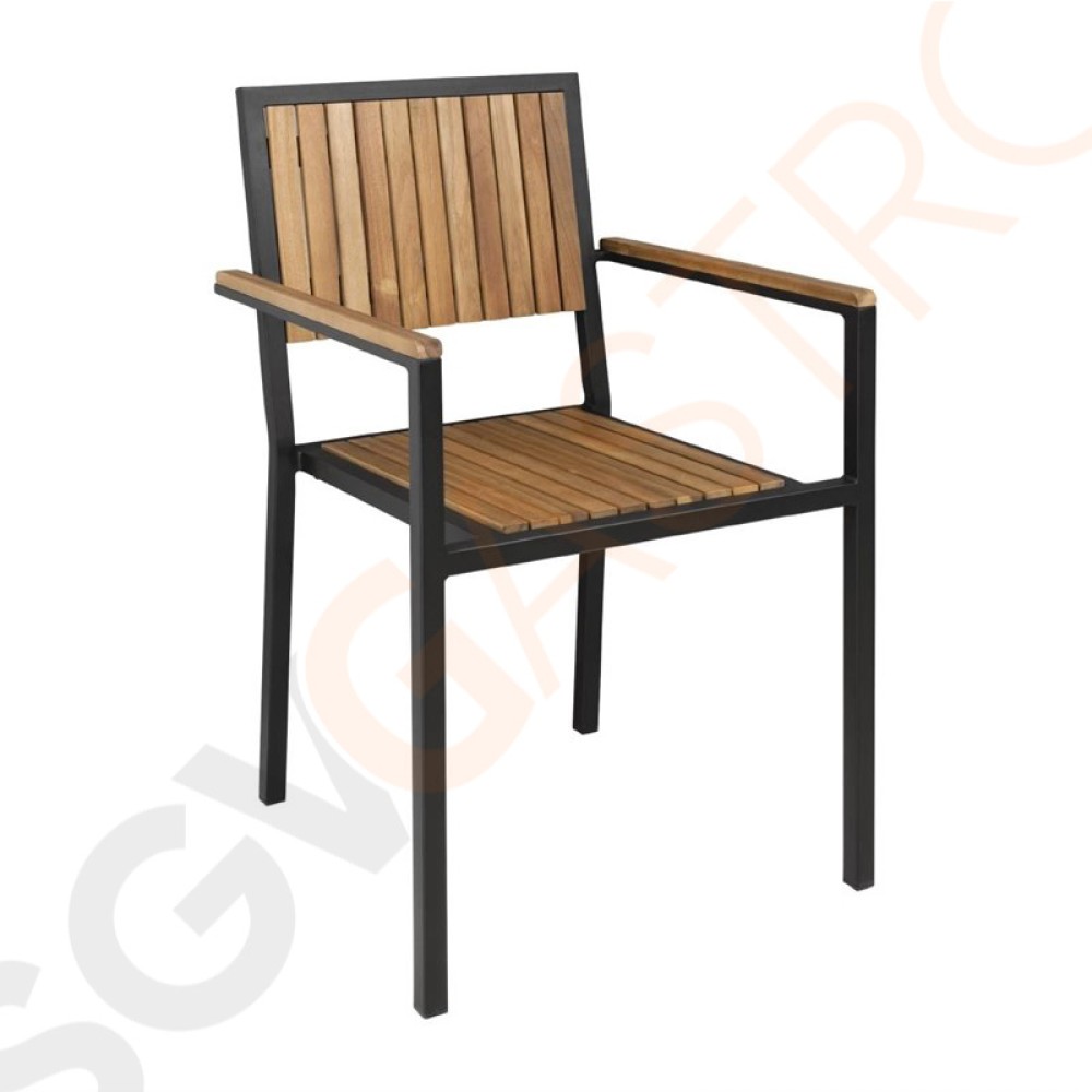 Stichworte: Bolero Stahl- und Akazienholzstühle mit Armlehnen Stahlgestell | Sitzfläche und Lehne aus Holz | Sitzhöhe: 45cm | 4 Stück