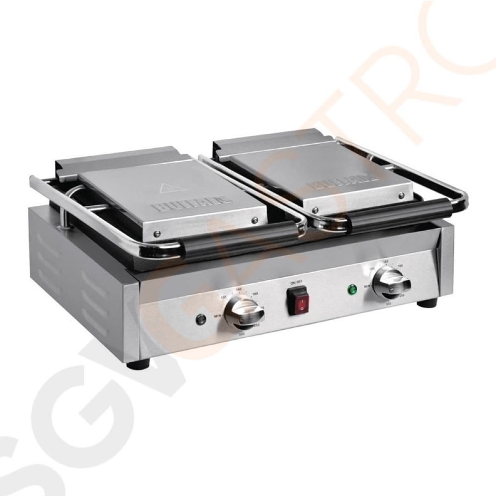 Stichworte: Buffalo Bistro Kontaktgrill doppel glatt/glatt Leistung: 2, 9kW. Doppelter Grill. Flache obere und untere Platten