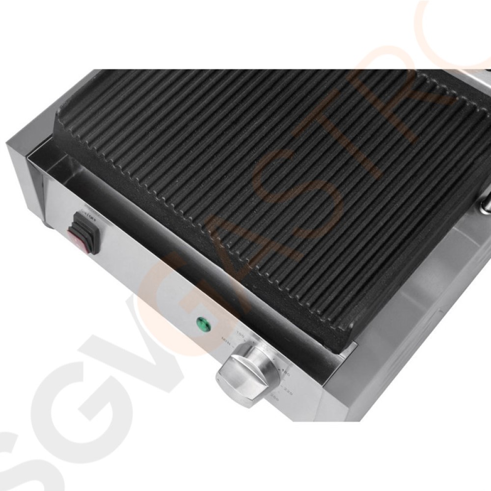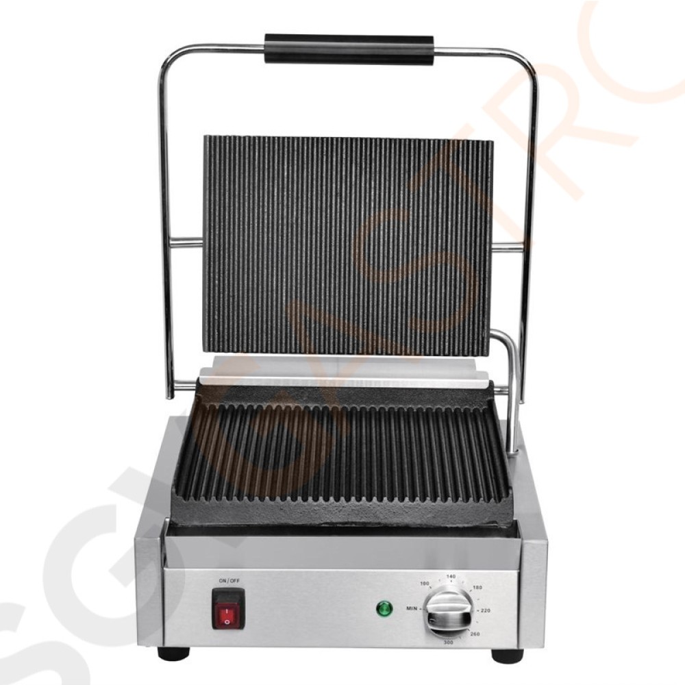 Buffalo Bistro Kontaktgrill einzel groß gerillt/gerillt Leistung: 2,2kW. Groß. Gerillte obere und untere Platten