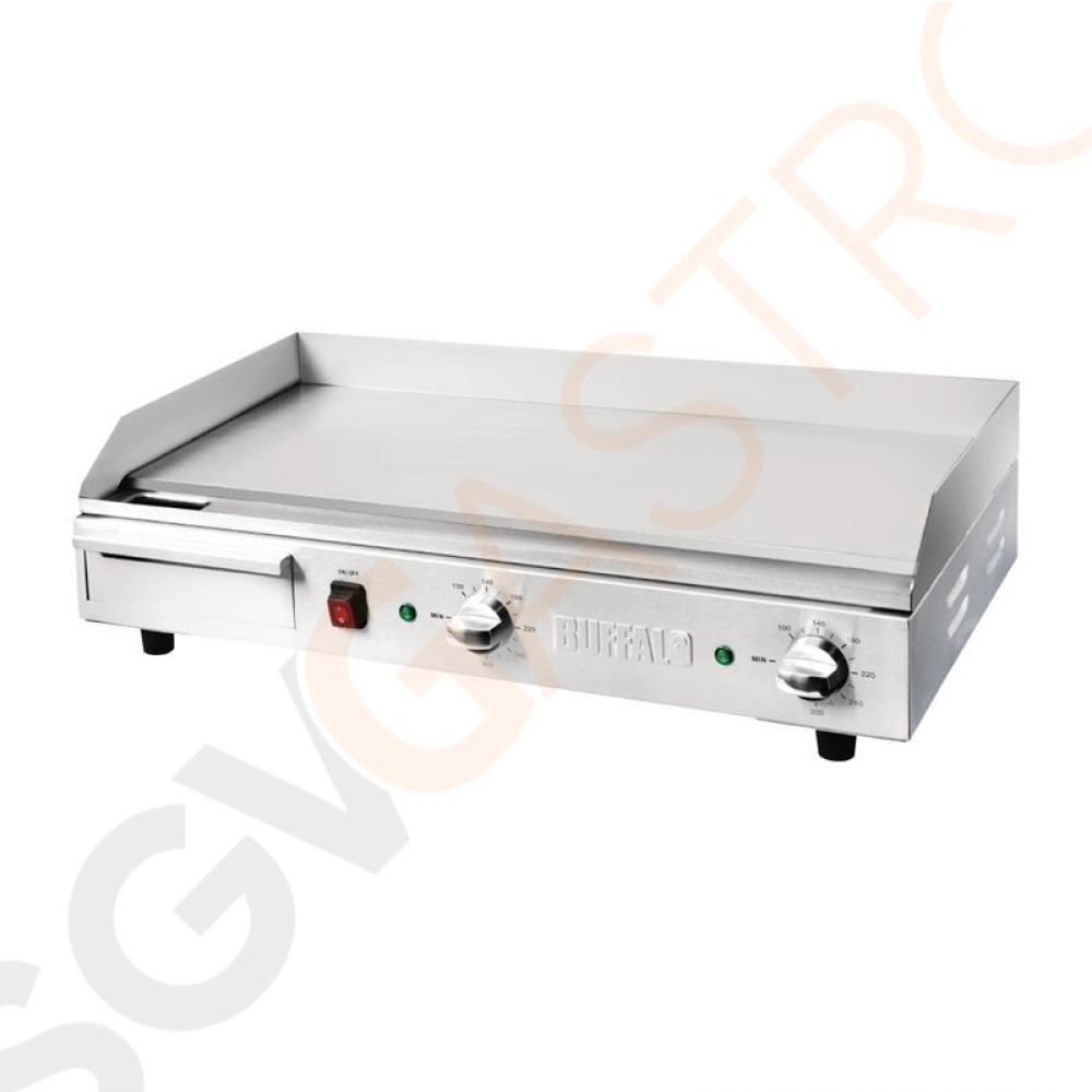 Die stählernen Grillplatten von Buffalo haben ein stilvolles neues Design und eignen sich für eine intensive Nutzung. Die praktischen Tischmodelle verfügen über zwei leistungsstarke Heizelemente, eine exkate Temperaturregulierung sowie eine thermische Sicherheitsabschaltung