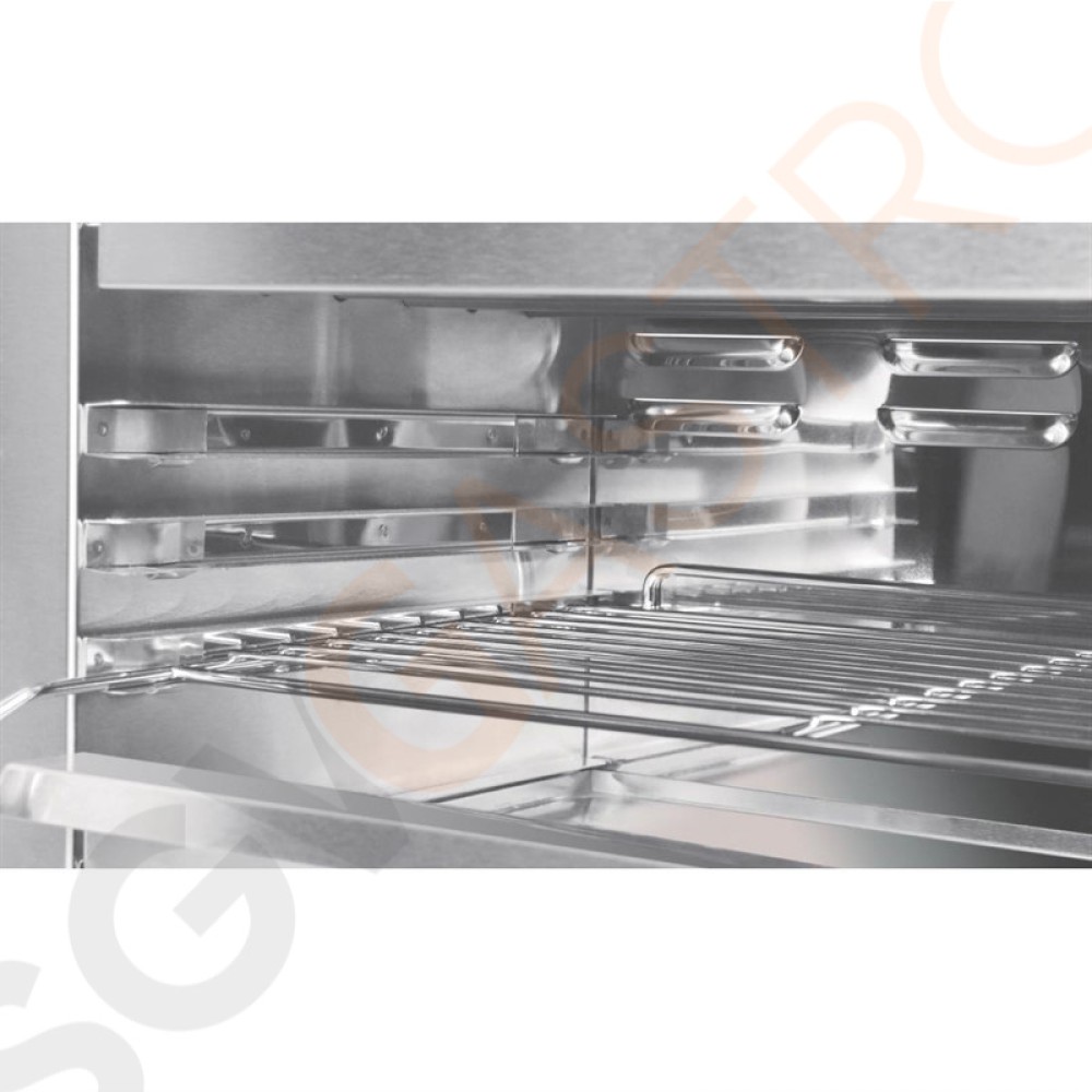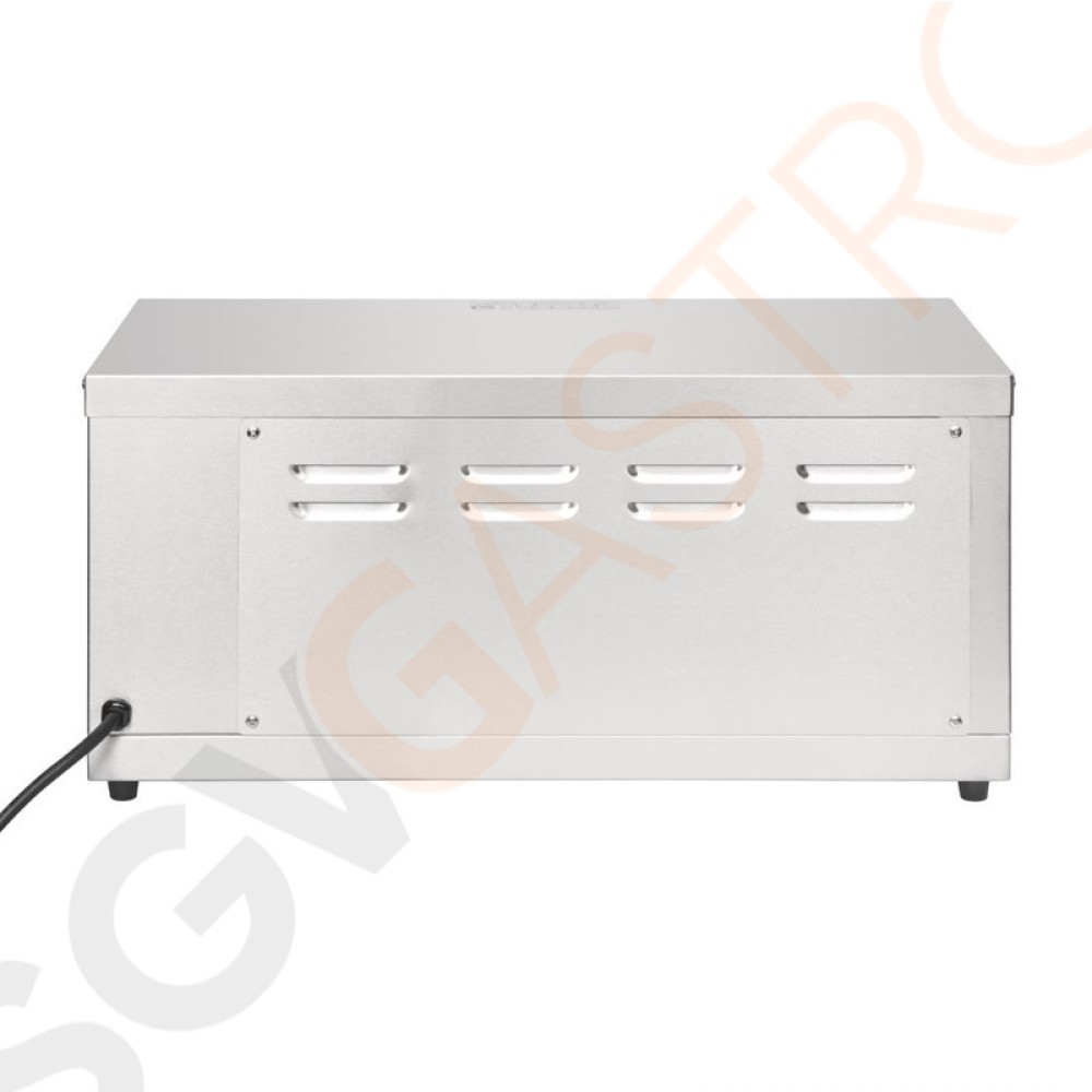 Sicheres und effizientes Tischmodell sorgt für schnelles Erhitzen, Grillen oder Toasten. Neonindikator.