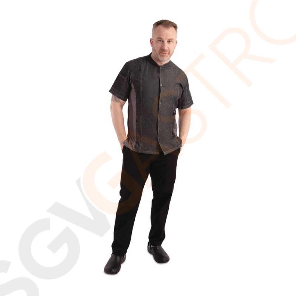 Stichworte: Chef Works Urban Tribeca Denim Kochjacke mit Druckknopfverschluss kurzarm grau XL Brustumfang: 122-127cm | Größe: XL
