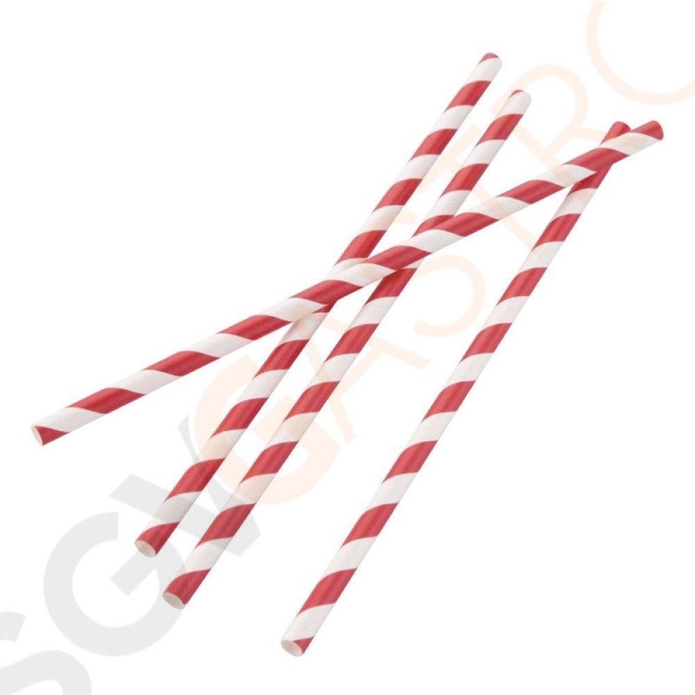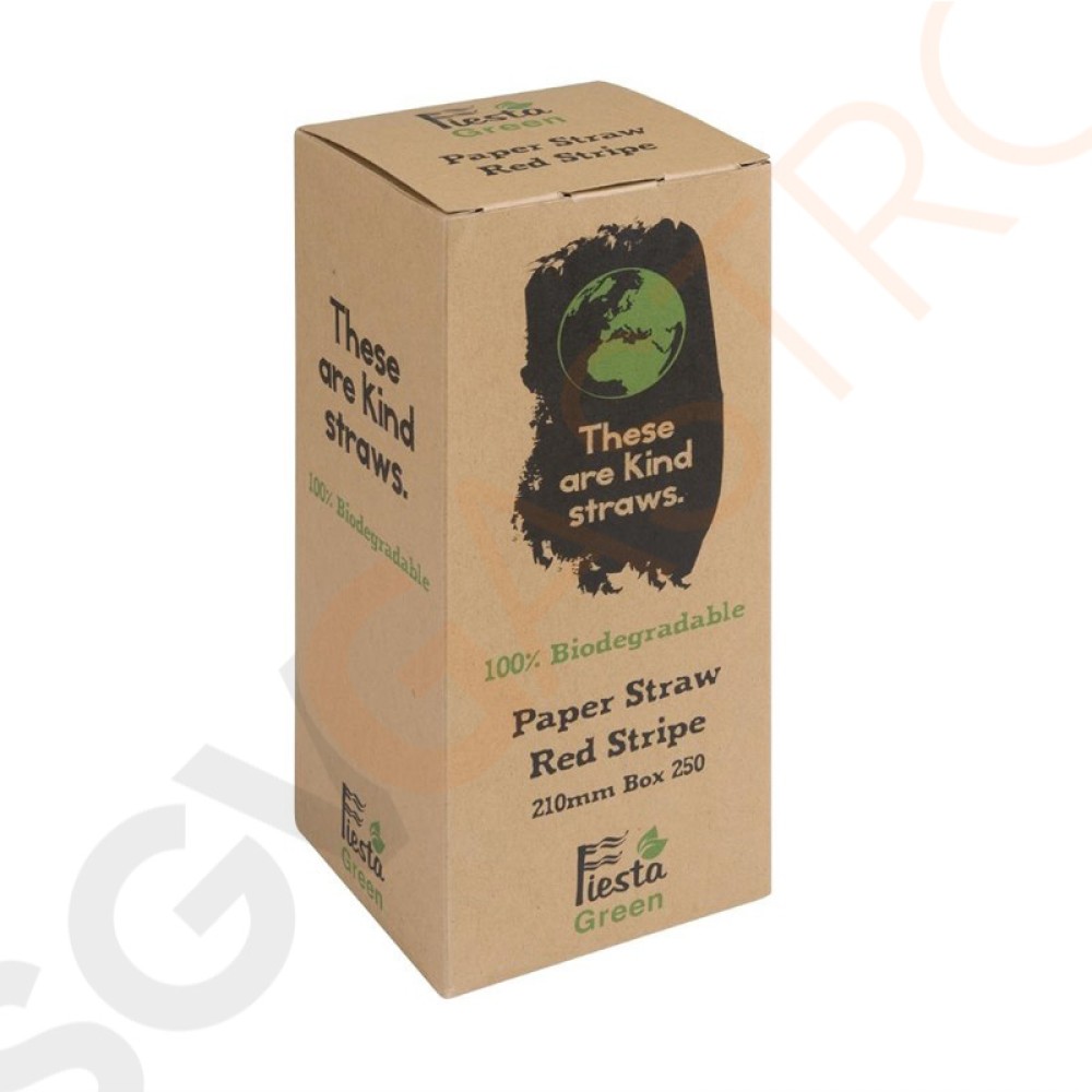 Stichworte: Fiesta Green Kompostierbare Papiertrinkhalme rot geringelt 21(L)cm | 250 Stück
