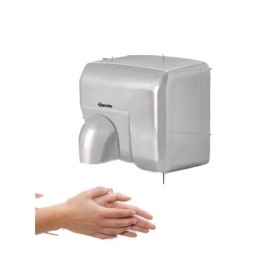 Bartscher Händetrockner 2,3 kW CNS Material: Edelstahl, HochglanzpoliertFarbe: SilberEin-/Ausschalter: NeinDigital-Anzeige: NeinLuftleistung: 58 Liter / Sek.Trocknungszeit max.: Ca. 60 SekundenLufttemperatur: Ca. 60 °CStart/Stop-Automatik über Infrarot-Sensor: JaAusführung: WandmontageInklusive: BefestigungsmaterialEigenschaften: Luftaustrittsdüs..