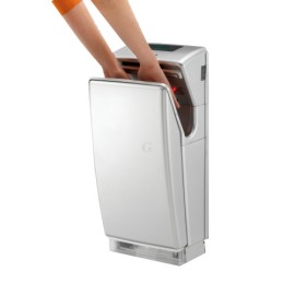 Bartscher Händetrockner Jet 180024 Monate GarantieHochleistungsstarke Luftdüsen ermöglichen eine schnelle und gründliche Trocknung der Hände. Diese effiziente Händetrocknungsmethode ist hygienisch und zudem wirtschaftlich.Material: Kunststoff, LackiertFarbe: SilbergrauEin-/Ausschalter: NeinDigital-Anzeige: JaLuftleistung: 47 Liter / Sek.Tr..