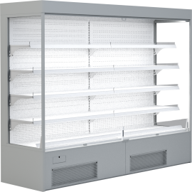KBS Impuls Wandkühlregal Alvin 2Verkaufsförderndes Impuls-Wandkühlregal Alvin mit Panormaseitenteile in schwarzglas mit Chromoptik und integrierten Nachtrollo zum Schutz der Ware. Das Kühlregal hat eine elektronische Steuerung mit digitaler Temperaturanzeige. Das Kühlregal verfügt über eine energiesparende LED Innenbeleuchtung die unt..