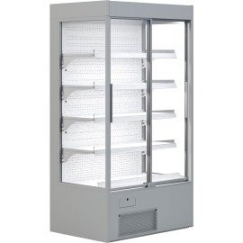 Wandkühlregal Variant in RAL 7035 lichtgrau lackiert mit seitlichen Glasscheiben für den optimalen Blick auf Ihre Produkte. Silber lackierter Türrahmen mit Isolierglas-Schiebetüren. Geringe Fronthöhe von 430 mm. Neben der LED Innenbeleuchtung verfügt das Kühlregal Variant über selbstschließende Schiebetüren. Für die Lagerung und Präsentatio..