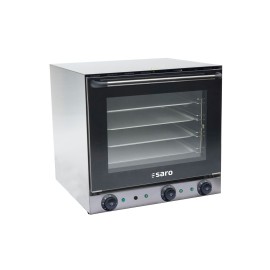 Saro Heißluftofen mit Grill, Modell EKO 5924 Monate Garantie- Material: Edelstahl - Manuelle Steuerung mit Drehknöpfen - Distanz zwischen den Rosten 84 mm - 2 Lüfter + Grill - Timer - Kapazität: 4 x 435 x 350 mm oder 450 x 325 mm - Lieferung ohne Roste - Gewicht: 39 kg - Maße: B 589 x T 660 x H 580 - Temperaturbereich: max. +280 °C - Ansc..
