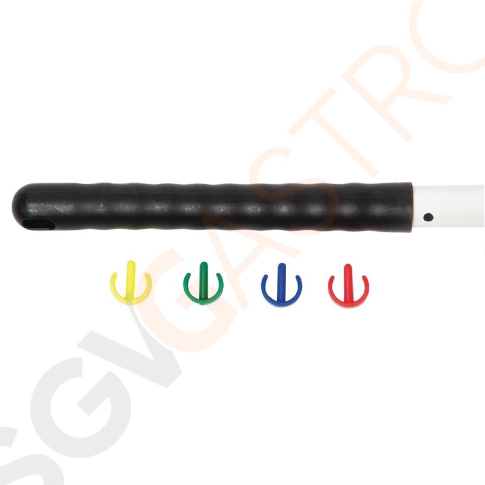 Stiel mit farbigen Clips zur schnellen und einfachen Identifizierung für ausgewiesene Reinigungsbereiche. Länge 137cm.
