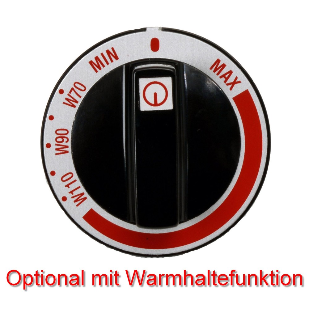 Die einfache Bedienung erfolgt über verschleißfeste elektronische Leistungsregler. Die digitalen Anzeigen unter dem Ceranglas zeigen die jeweils gewählte Leistung (1-9) oder eventuelle Störungen. Alle Induktionsgeräte sind serienmäßig mit Pan Quality Control ausgestattet. Nach Aufstellen des Kochgeschirrs ermittelt die Elektronik die Wertigkeit des Geschirrs und signalisiert den Wert über die Anzeige.