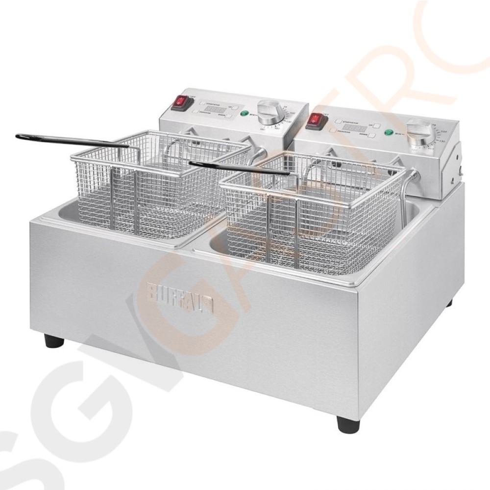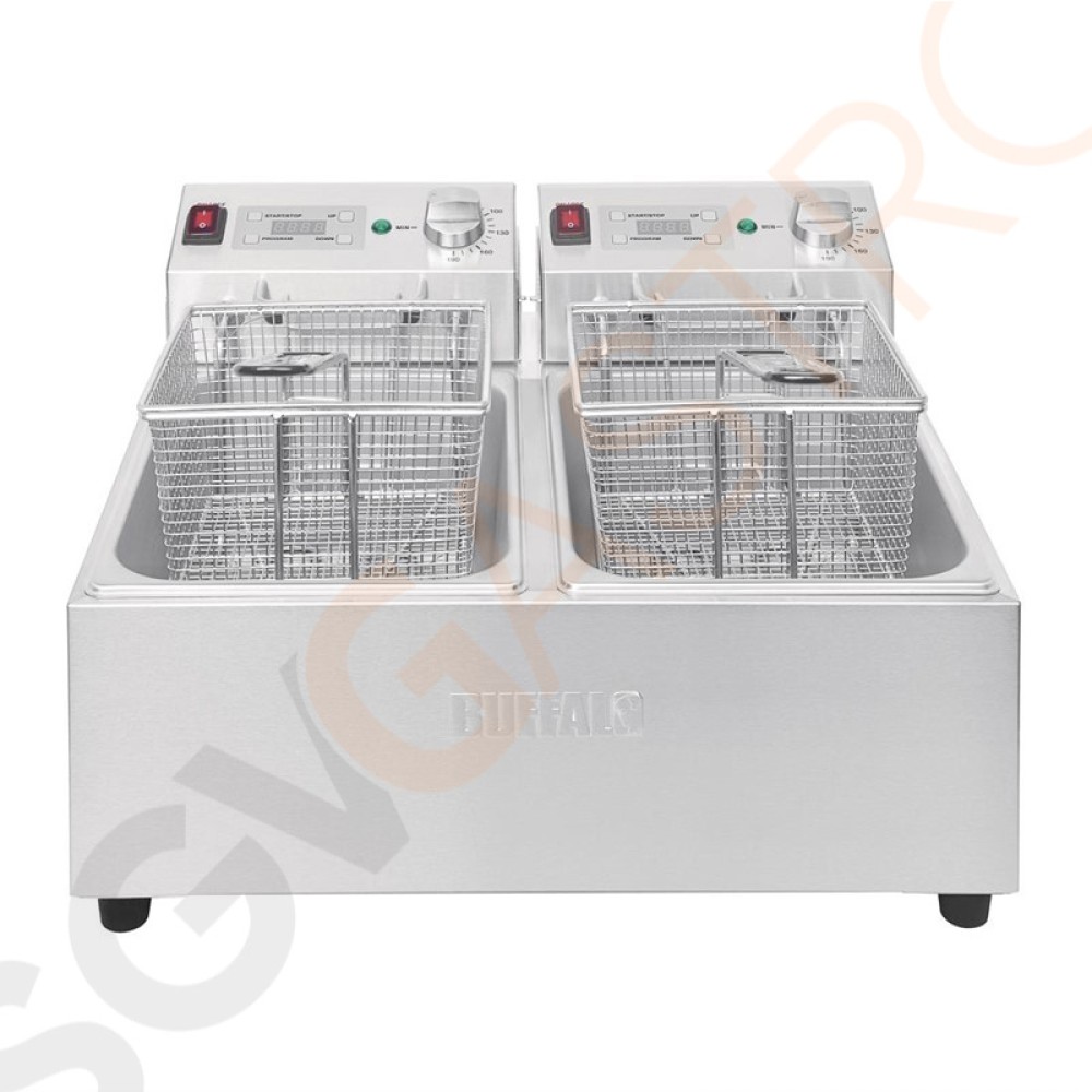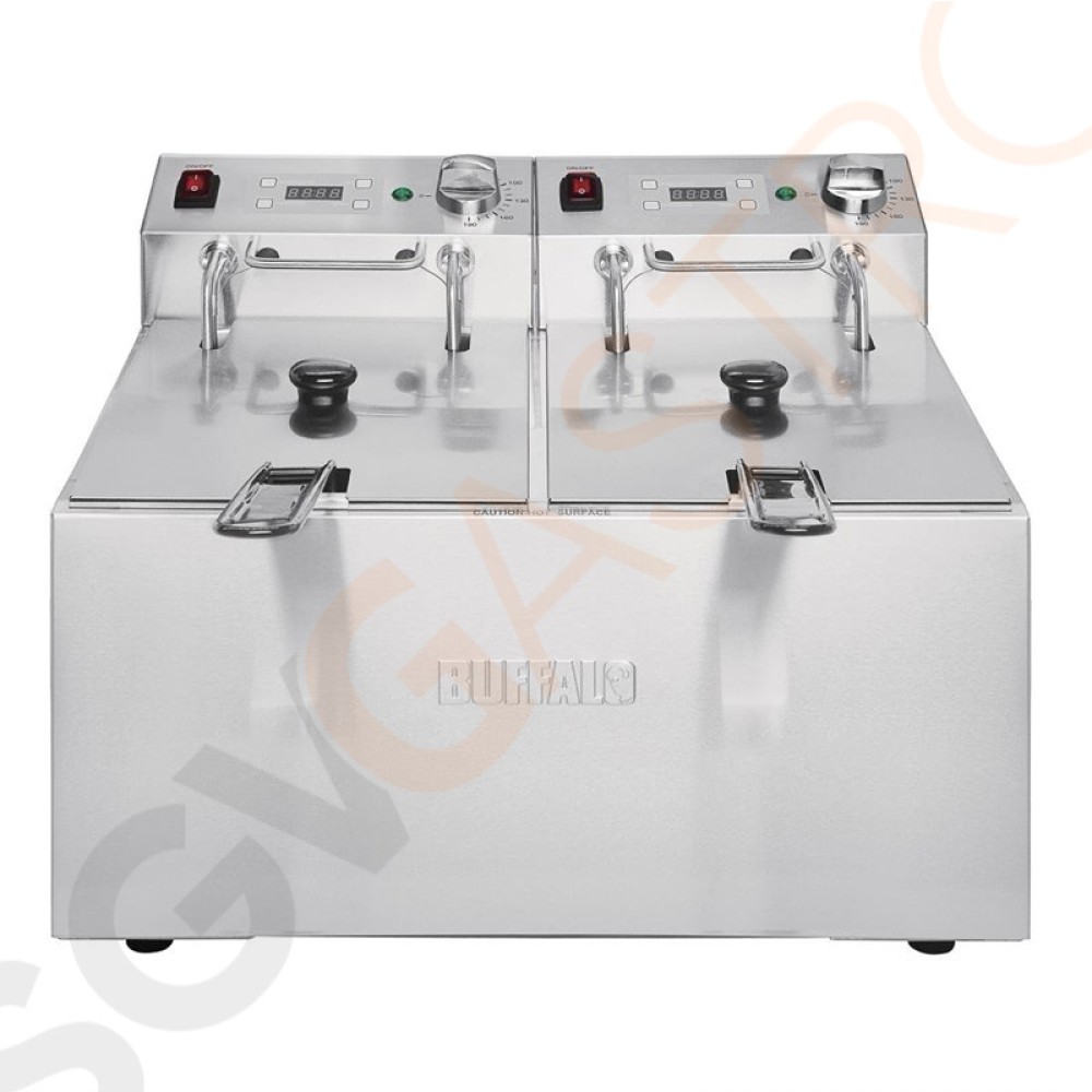Stichworte: Buffalo Doppelfritteuse 2 x 5L 2 x 2, 8kW. Ölkapazität: 2 x 5L
