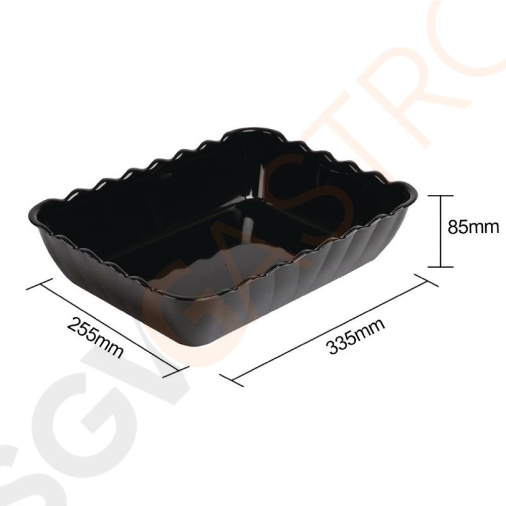 Starker, thermostatischer Kunststoff, fleckenabweisend, zerbricht oder splittert nicht. Perfekt für die Präsentation von heißen oder kalten Speisen.