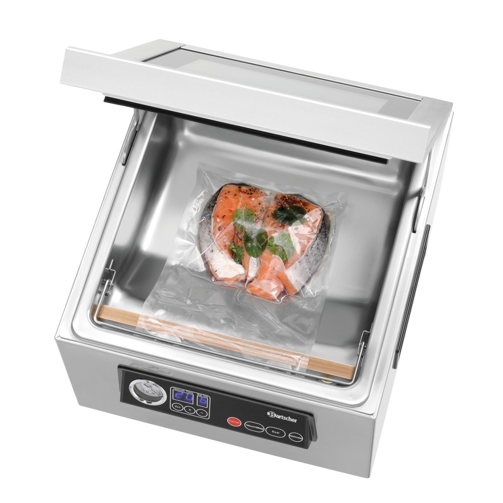 Alles im Blick: Das Kammer-Vakuumiergerät ist mit einem Glasdeckel und
