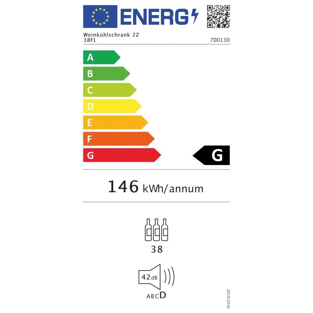 - Fassungsvermögen: 38 Flaschen (oben 15 flaschen, unten 23 Flaschen)