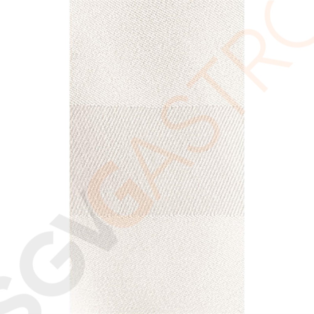 Luxuriöse, schwere Tischwäsche, hergestellt aus ägyptischer Baumwolle und verziert mit einem Satinband. Eine hohe Fadenzahl von 135 und ein Gewebegewicht von 210g/m² machen diese Linie perfekt für feine Restaurants.