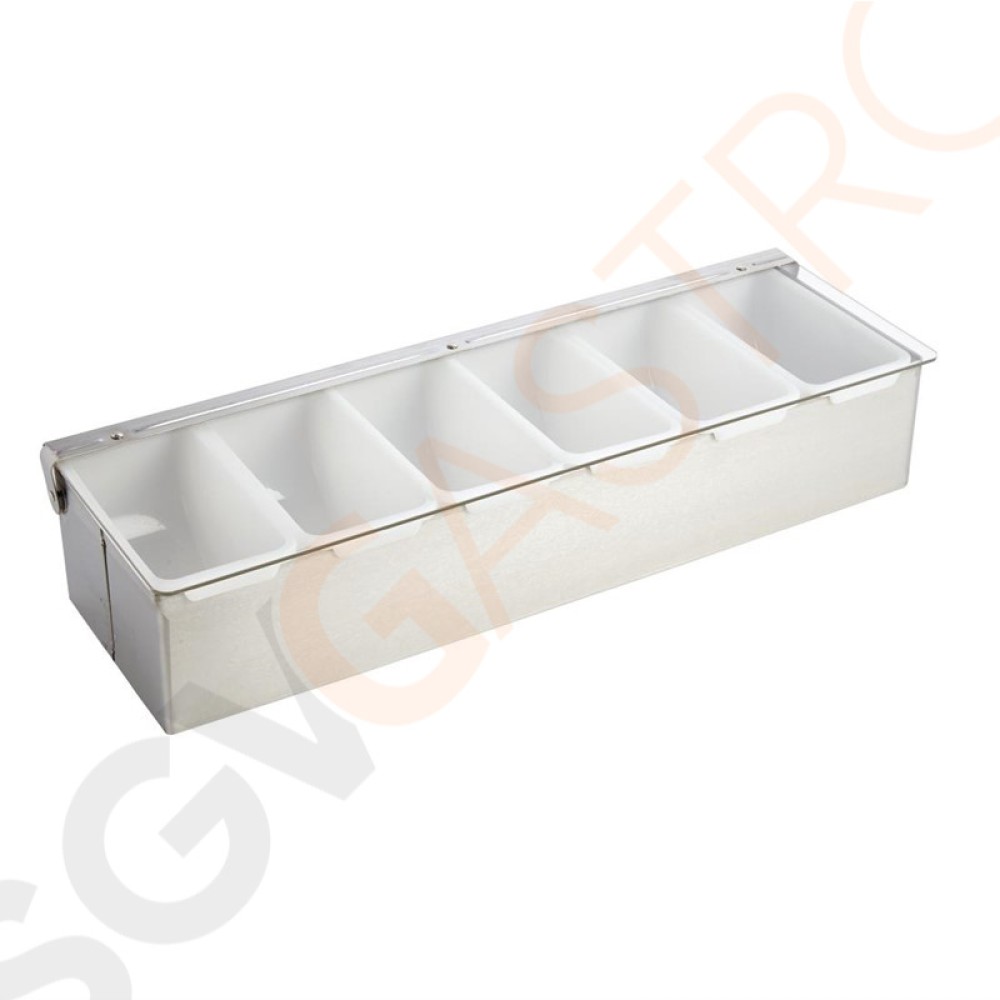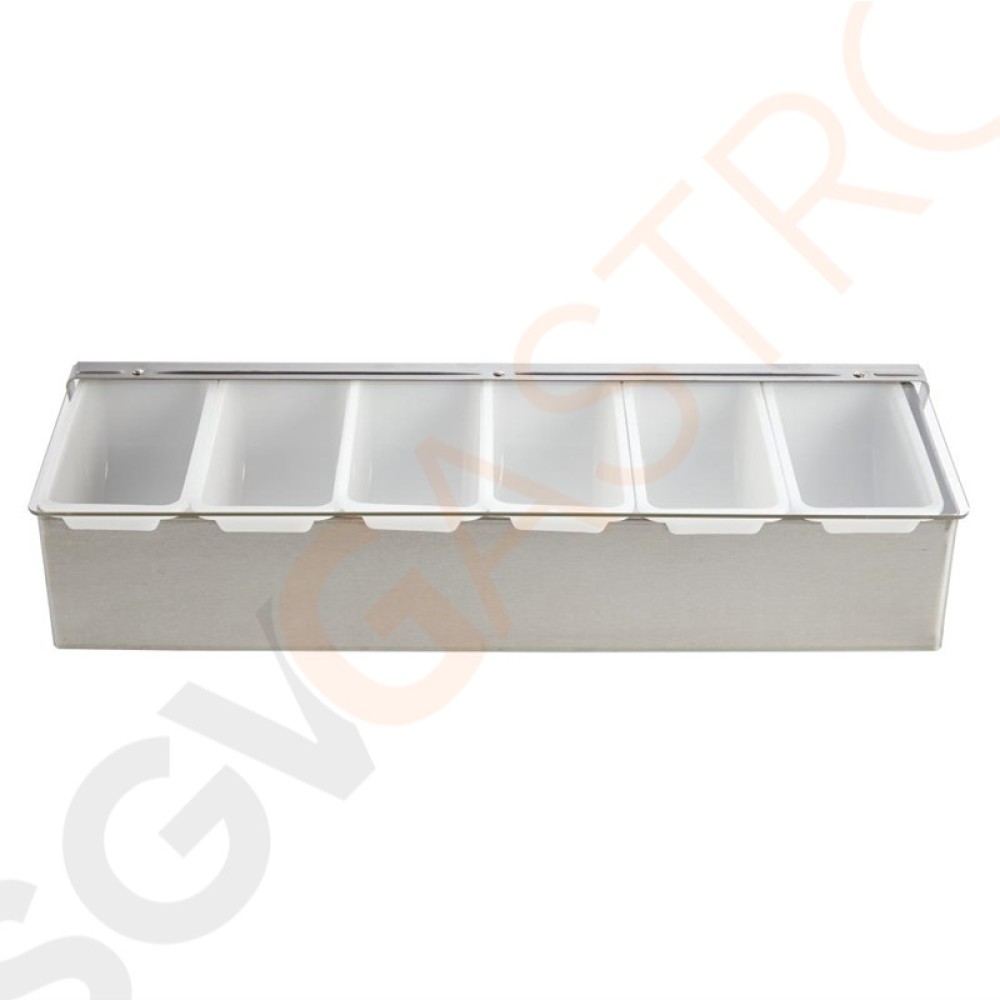 Olympia Beilagenbehälter 6 Fächer - 7,6(H) x 46(B) x 15,2(L)cm | 6 herausnehmbare Behälter | Gesamtkapazität: ca. 2,8L | Edelstahl