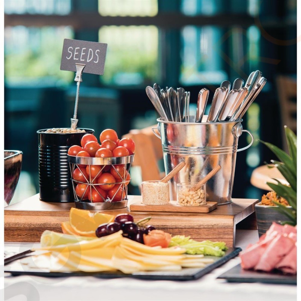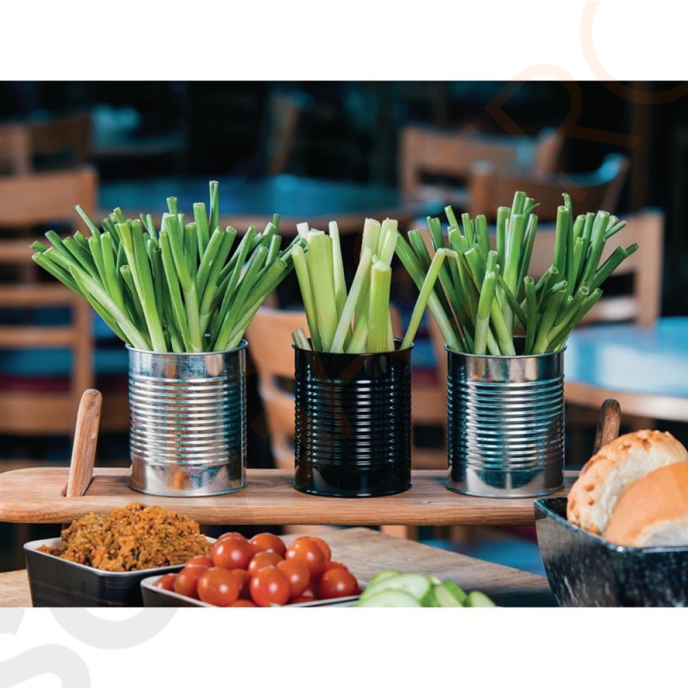 Büchsen aus galvanisiertem Stahl für Pommes Frites und andere Beilagen. Sehr praktisch, um Portionen gut abzumessen. Kann auch als Besteckbehälter genutzt werden. 11(H) x 9(Ø)cm.