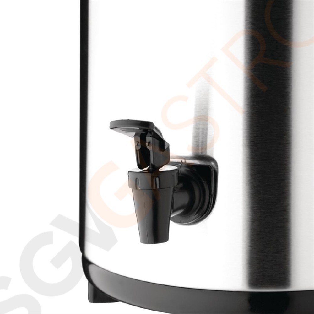 Doppelwandiger Getränkespender aus Edelstahl. Ideal für kalte und heiße Getränke. 8,5cm Zapfhöhe.