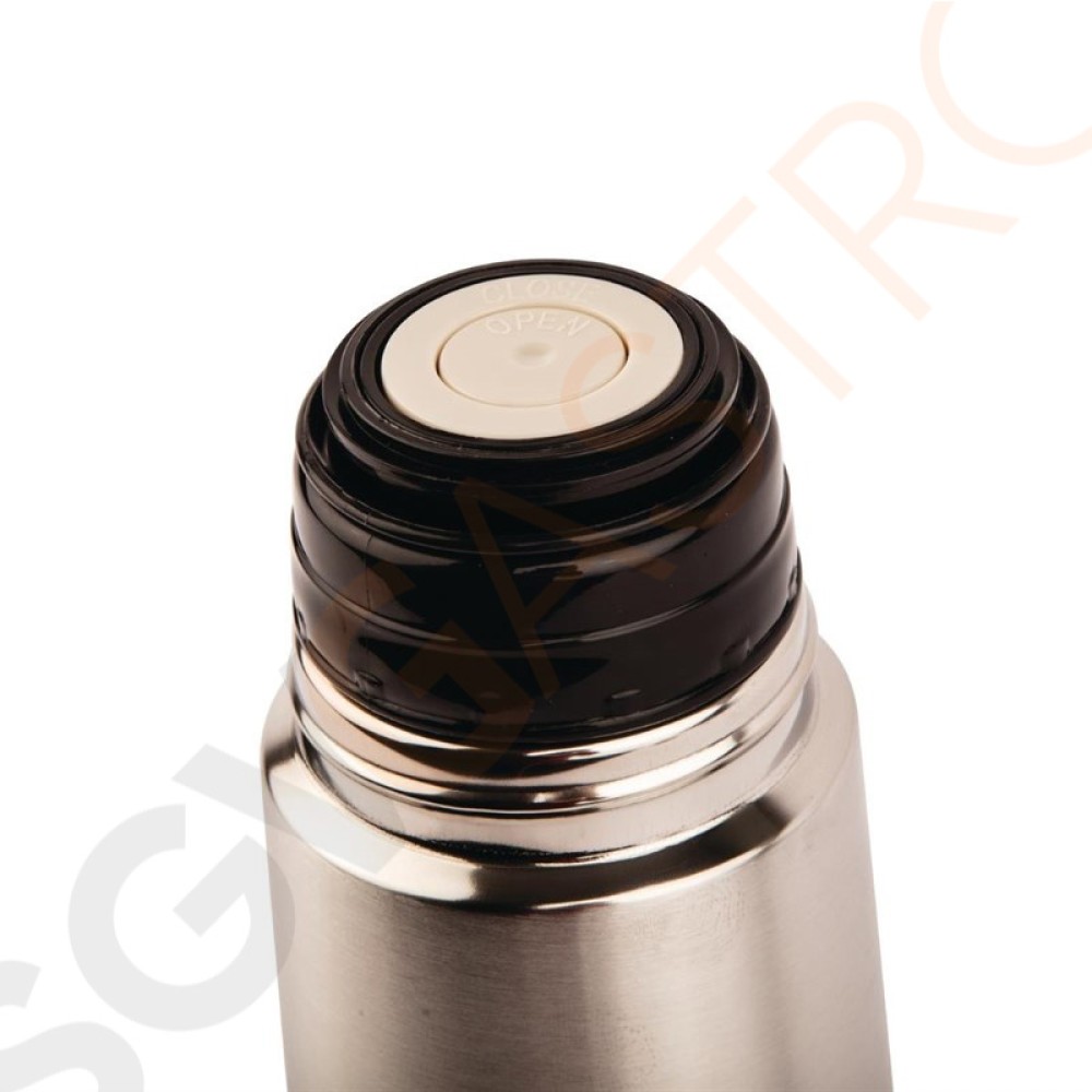 Edelstahlflasche mit Vakuumisolierung für unterwegs. Geeignet für heiße und kalte Getränke.