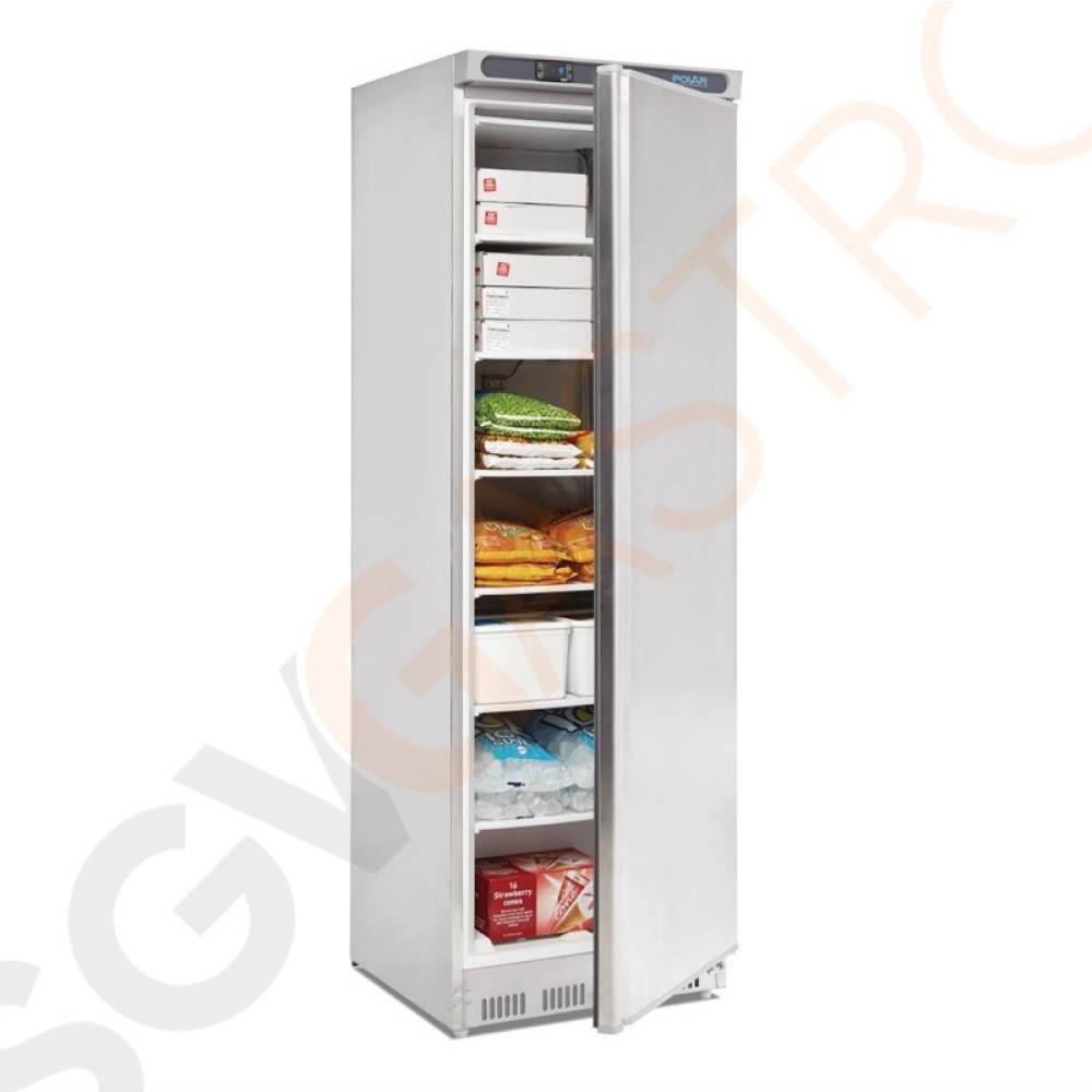 Polar Serie C Gefrierschrank Edelstahl 365L 210W/230V | 185 x 60 x 60cm | (Nutz)Kapazität: 365/258L | 6 Roste | 1-türig | Edelstahl