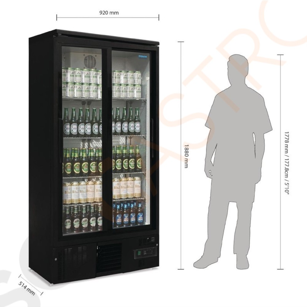 Polar Serie G Barkühlschrank hoch 2 Schiebetüren - Kapazität: 490L | 2 Schiebetüren | Schwarz