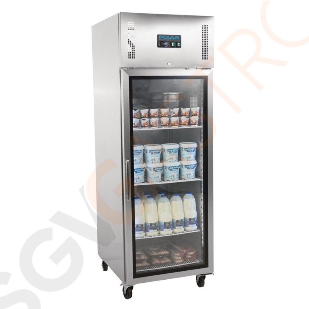 Stichworte: Polar Serie G Gastro Kühlvitrine 1-türig 600L Kapazität: 600L (Netto: 376L) | 1 Glastür | Silbergrau