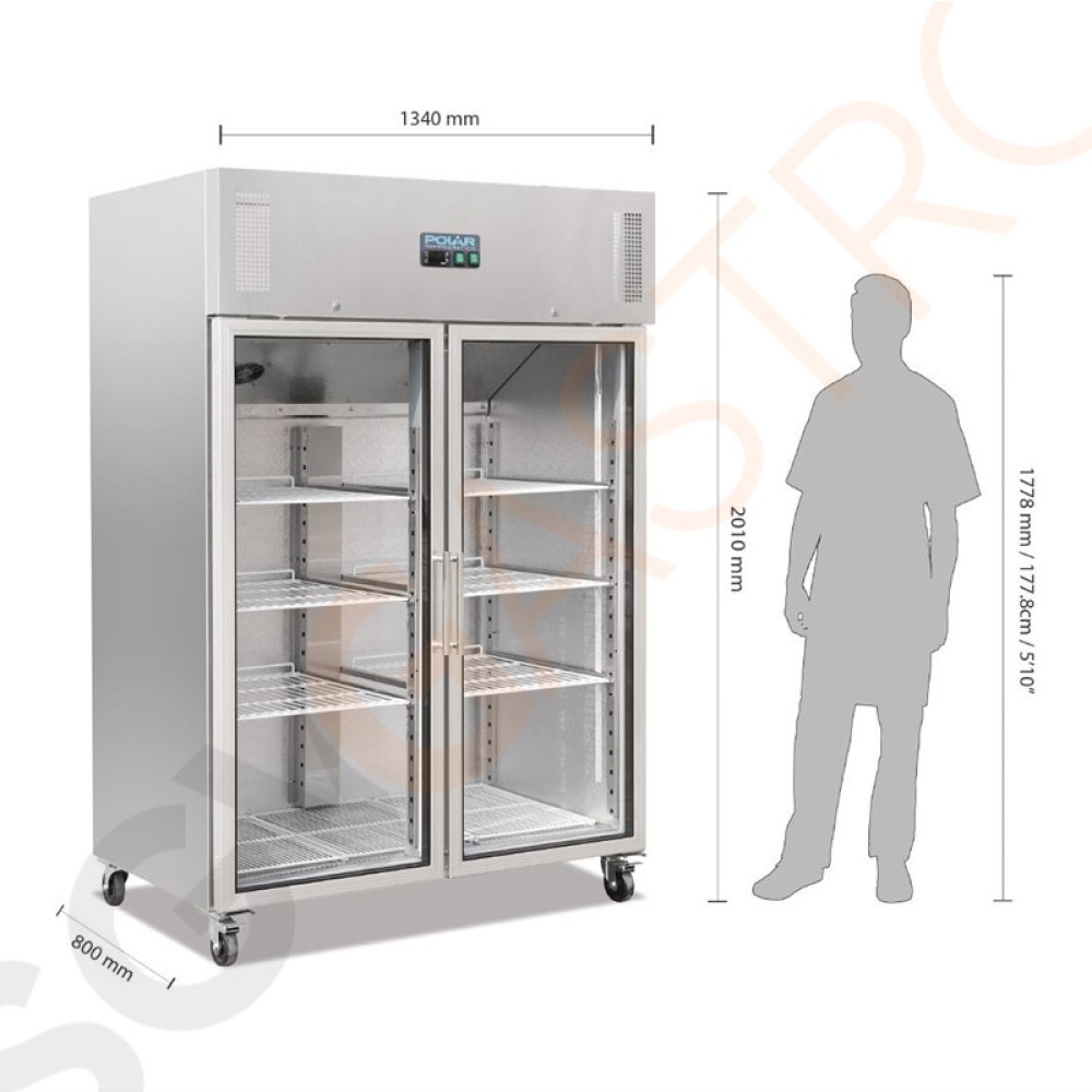 Polar Serie G Gastro Kühlvitrine 2-türig 1200L - Kapazität 1200L (Netto: 770L)| 2 Türen | Silbergrau