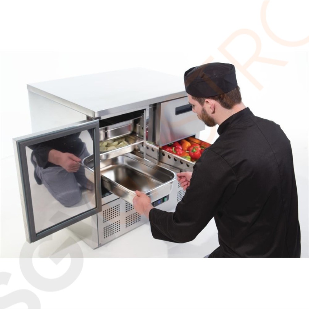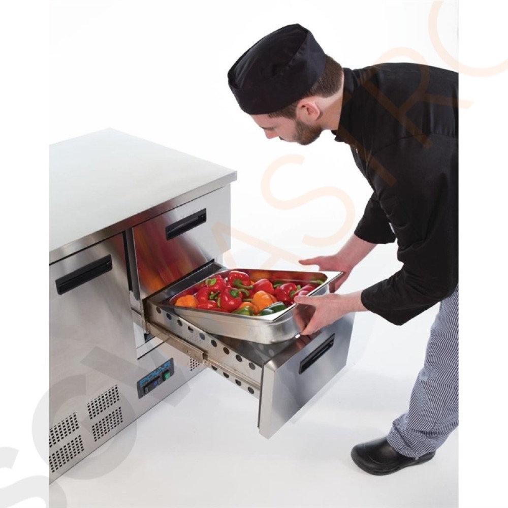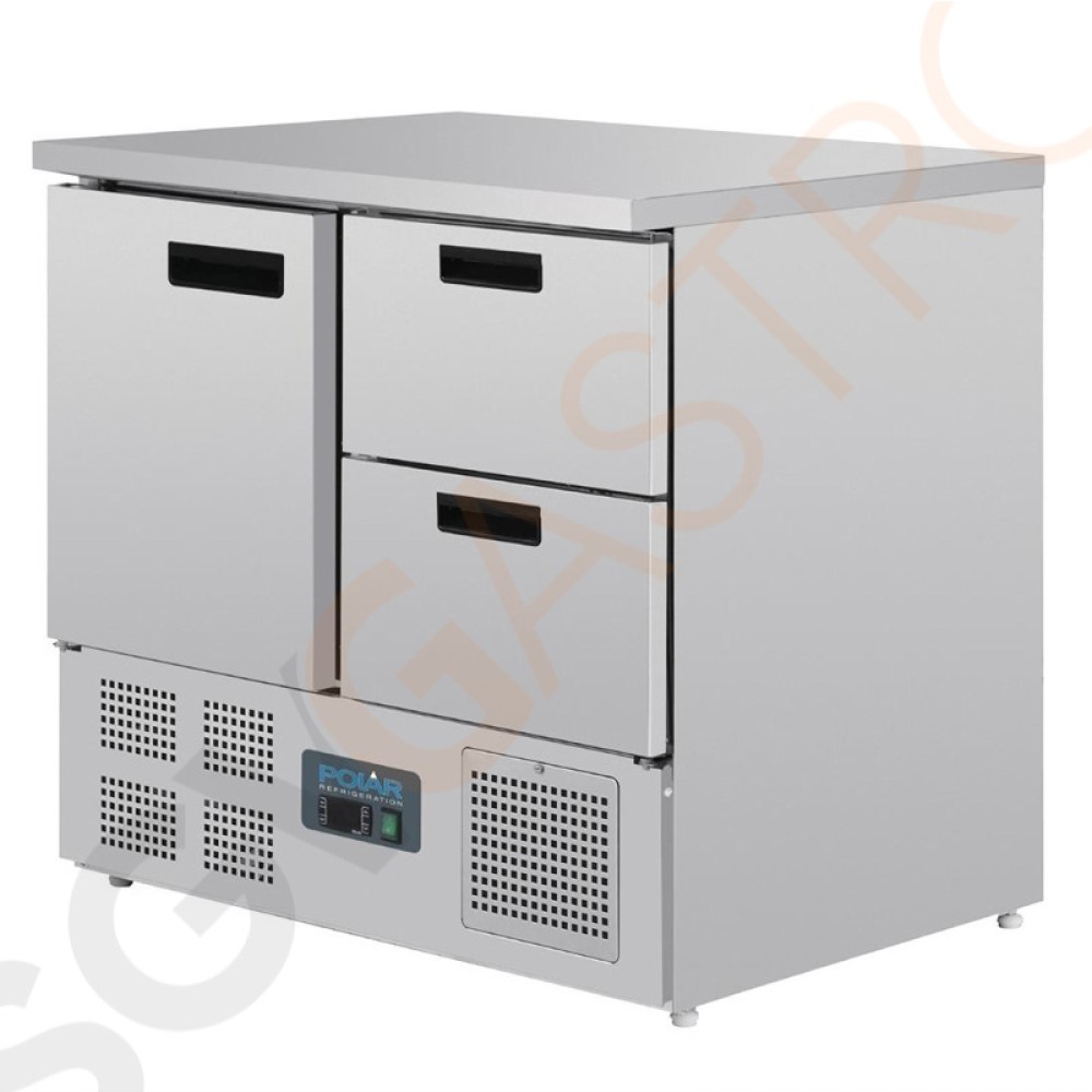 Stichworte: Polar Serie G Kühltisch 1-türig mit 2 Schubladen 240L Arbeitstisch mit Kühlschrank, Edelstahl, 1 Tür und 2 Schubladen.