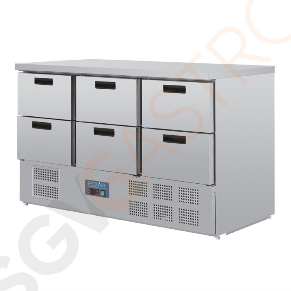 Stichworte: Polar Serie G Kühltisch mit 6 Schubladen 230V | Arbeitsfläche: 137 x 70cm | Kapazität: 6 x GN1/1