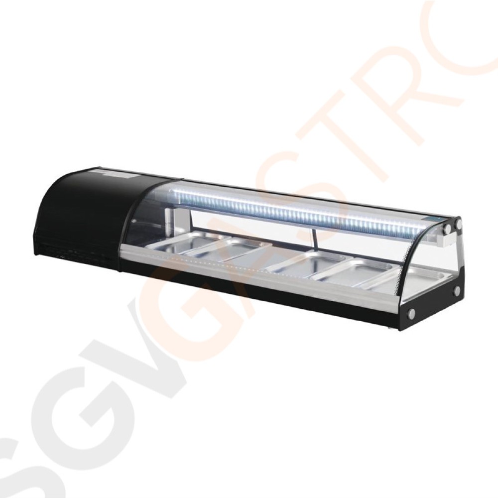 Polar Serie G Kühlvitrine für Sushi 150cm - Kapazität: 5 x GN1/3 | 150cm breit | Schwarz
