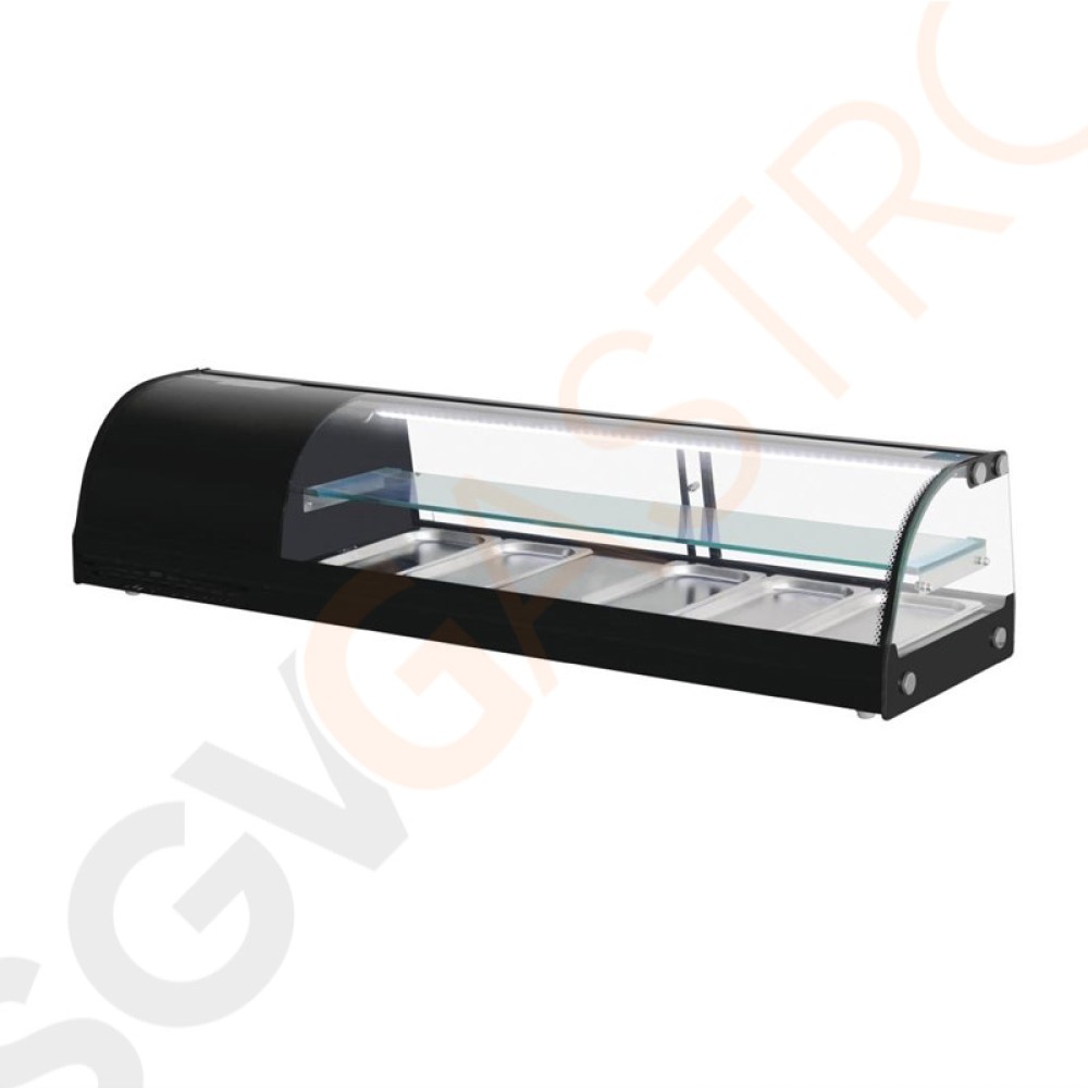 Polar Serie G Kühlvitrine für Tapas 150cm - Kapazität: 5 x GN1/3 | 150cm breit | Schwarz