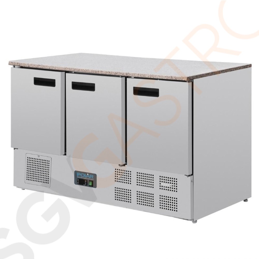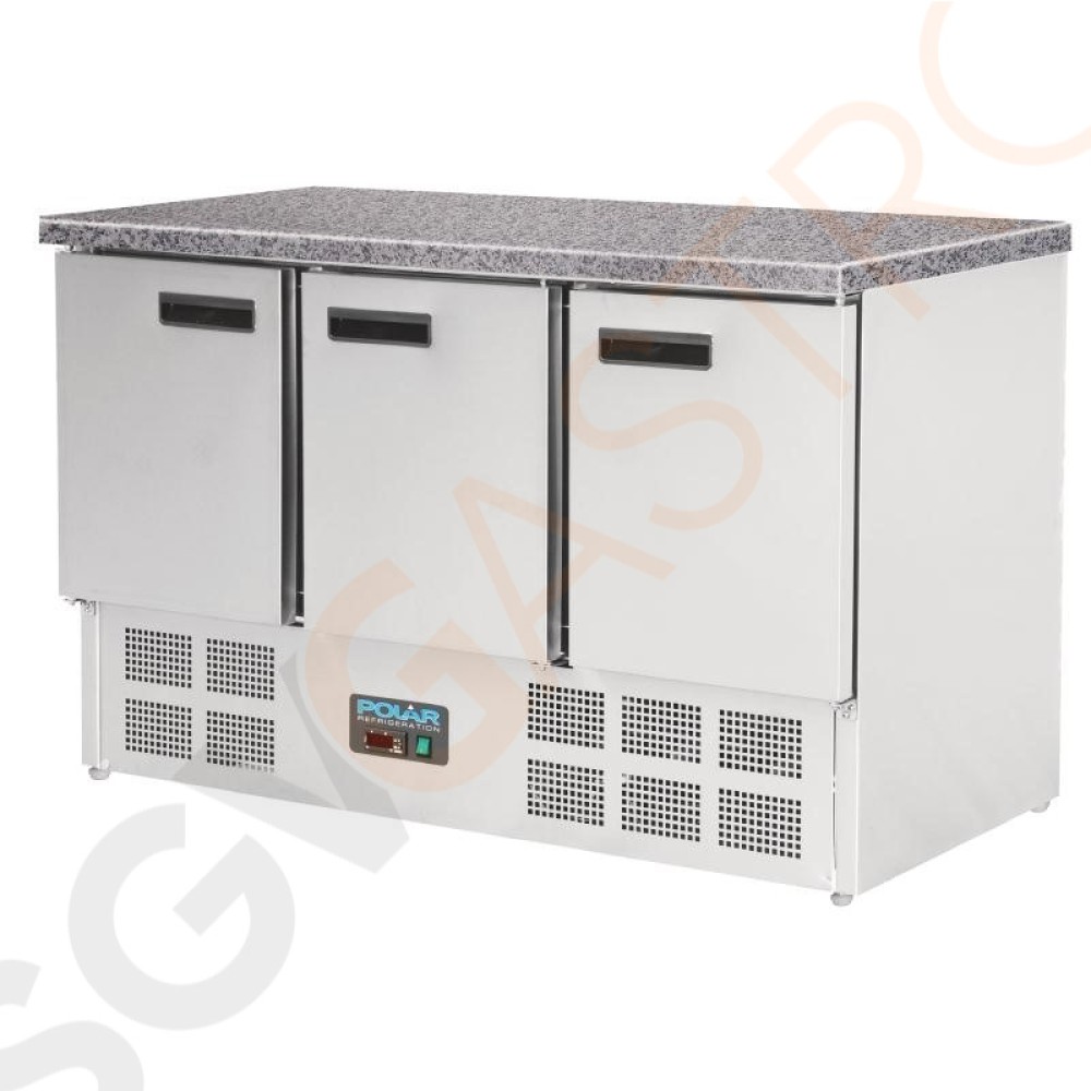 Stichworte: Polar Serie G Thekenkühltisch mit Marmorarbeitsfläche 3-türig 368Ltr 368Ltr. 3türig (9 x 1/1 GN)