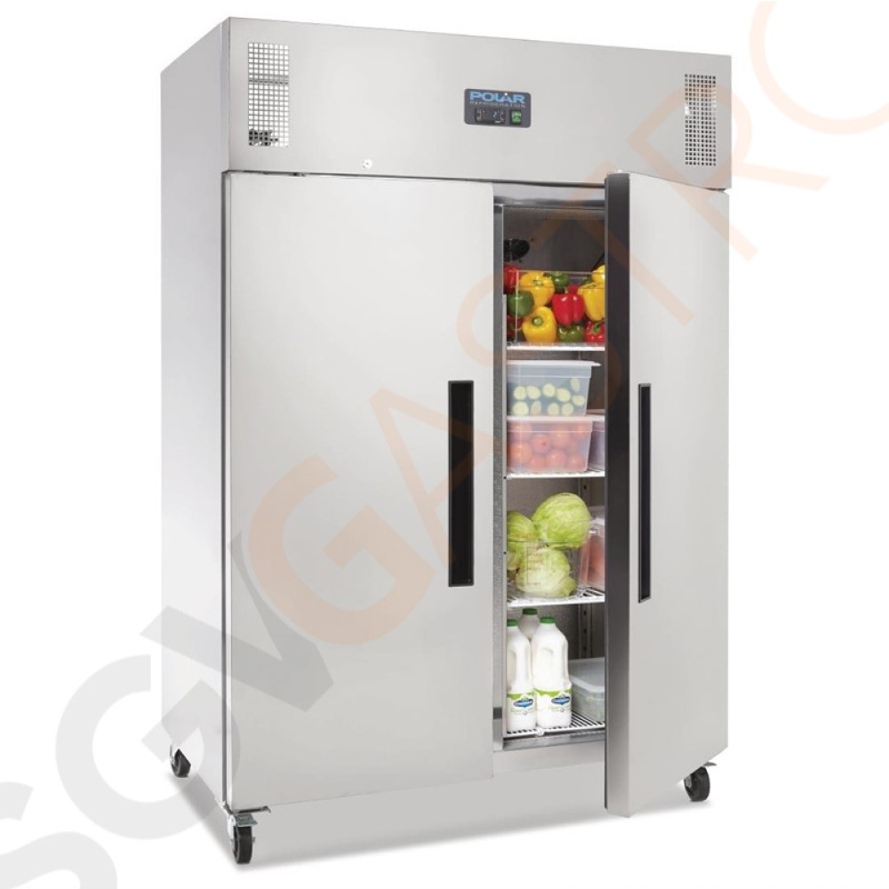 Polar Serie G zweitüriger Kühlschrank Edelstahl 1200L Bruttokapazität: 1200L | Nettokapazität: 770L | GN2/1-geeignet | 2-türig