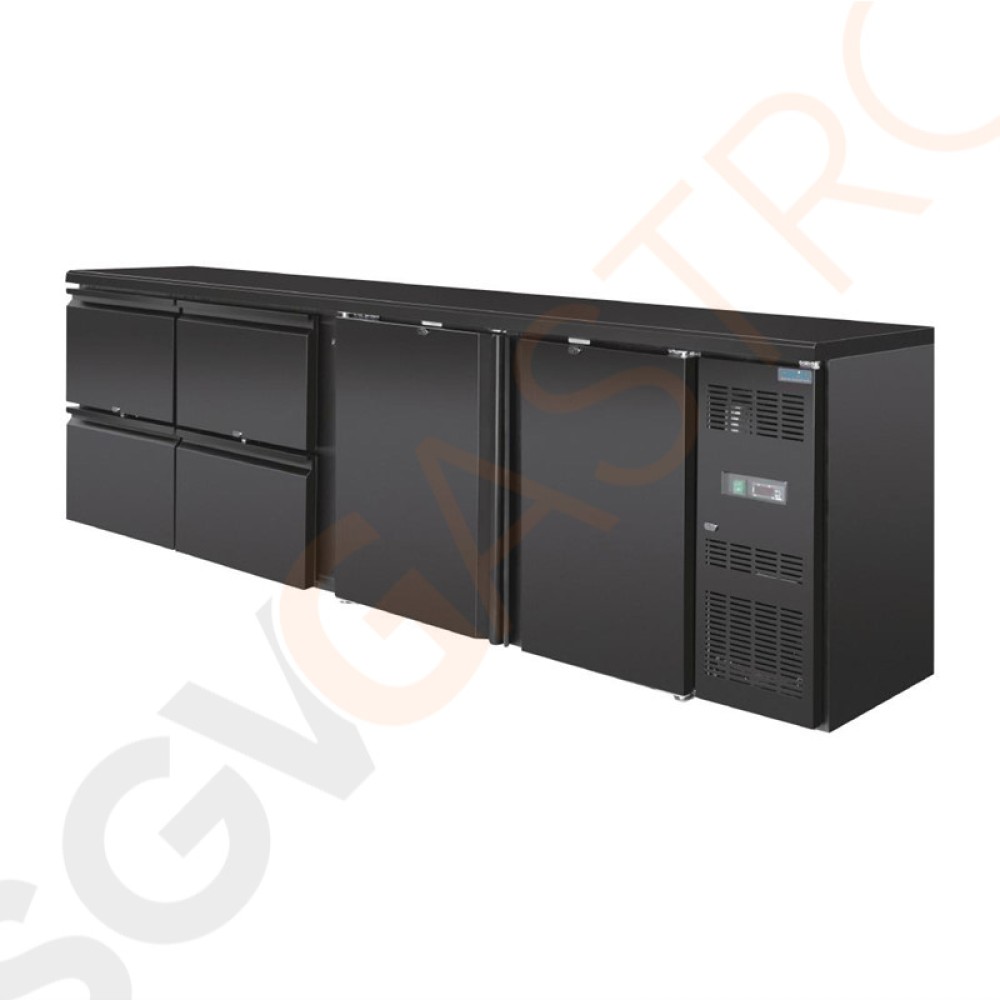 Stichworte: Polar Serie U Barkühlschrank 2-türig mit 4 Schubladen Kapazität: 698L | 4 Türen & 4 Schubladen | Schwarz