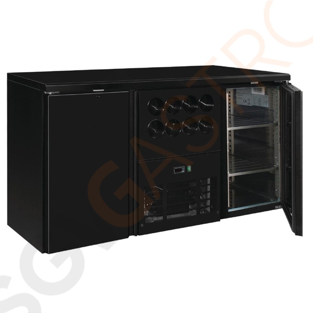 Polar Serie U Barkühlschrank 2-türig mit Flaschenkühlbereich Kapazität: 380L | 2 Türen & Flaschenkühlbereich (8 Flaschen) | Schwarz