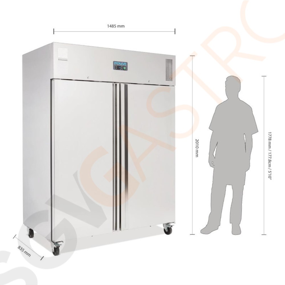 Stichworte: Polar Serie U Gefrierschrank 1300L 100W/230V | 201 x 148, 5 x 83, 5cm | (Nutz)Kapazität: 1300/934L | 2-türig | Edelstahl