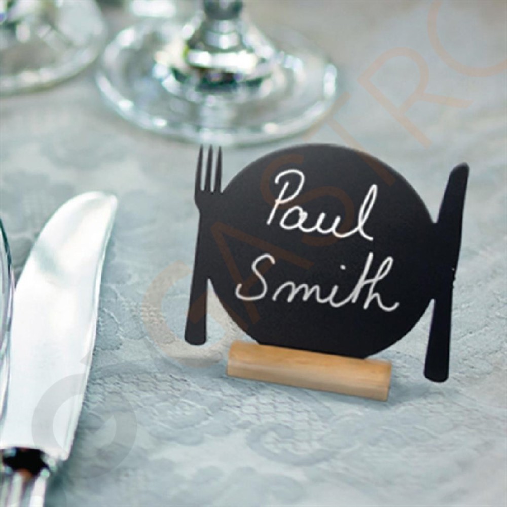 Ausgefallene Minikreidetafeln mit Holzbasis, ideal zur Anzeige von Tischnummern. UV-, stoß-, fleck- und kratzbeständig. Geliefert mit Kreidestift.