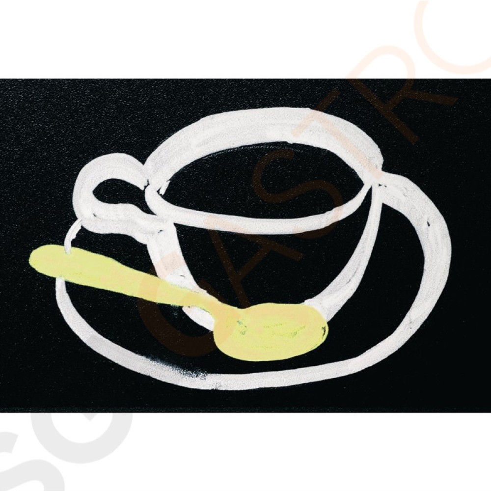 5 Schablonen mit Zahlen, Symbolen, Alphabet und 13 Bildern geben jeder Tafel ein professionelles Aussehen.