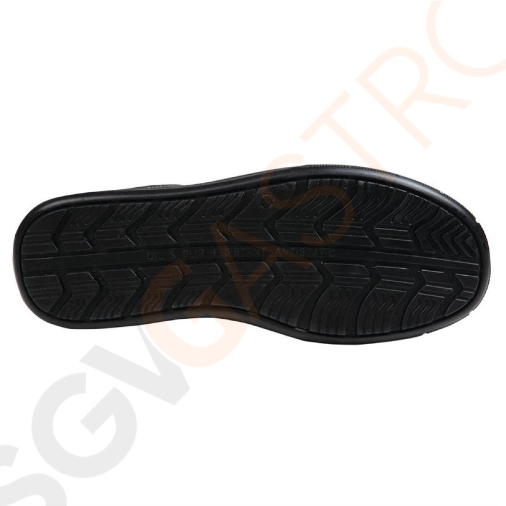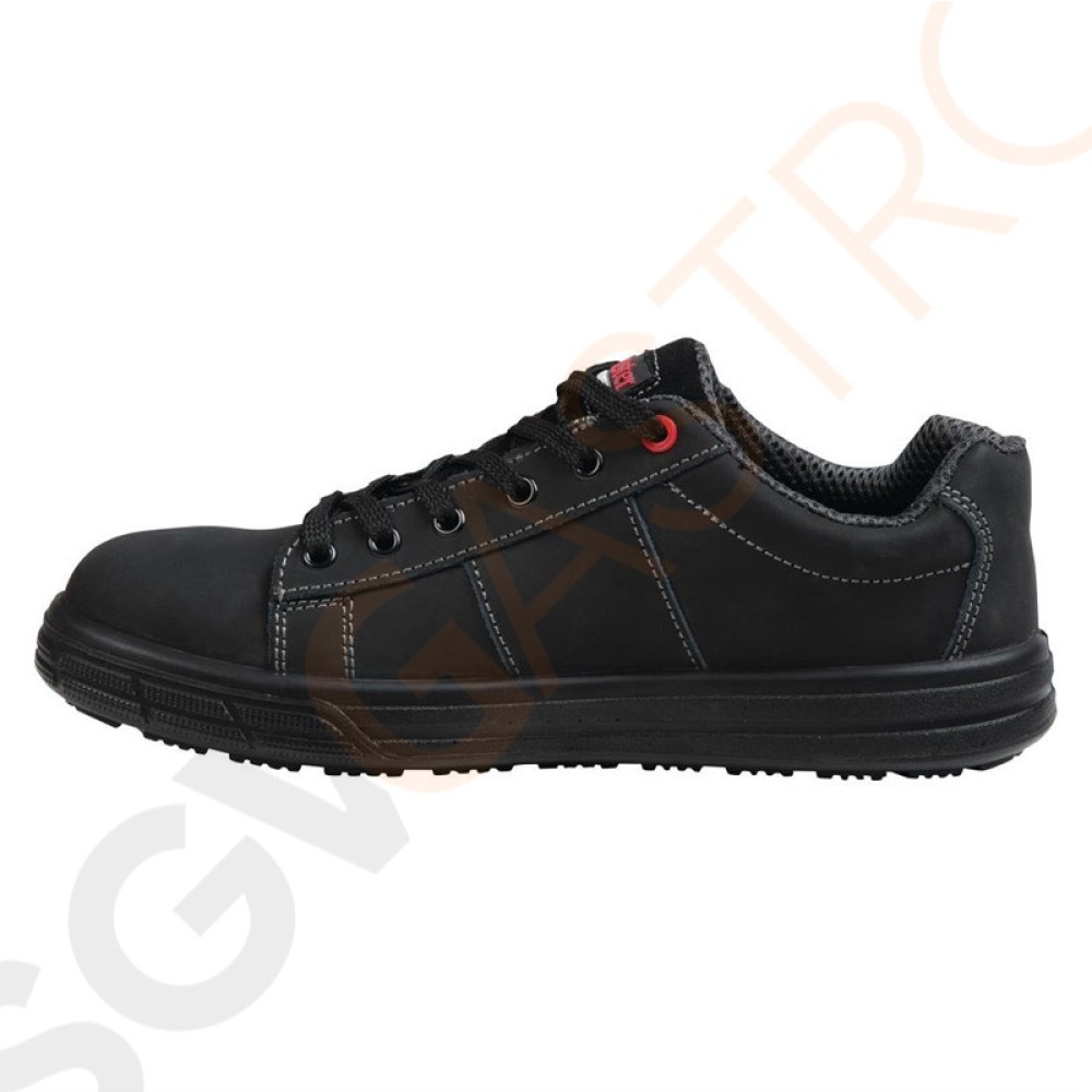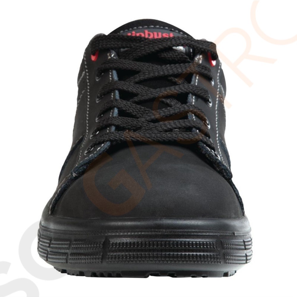 Diese rutschfesten, eleganten und bequemen Schuhe können problemlos den ganzen Tag getragen werden. Ein sportlicher Schuh mit rutschfester Außensohle, einem Zehenschutz aus Stahl und einer vorgeformten Innensohle samt gepolstertem Ferseneinsatz.