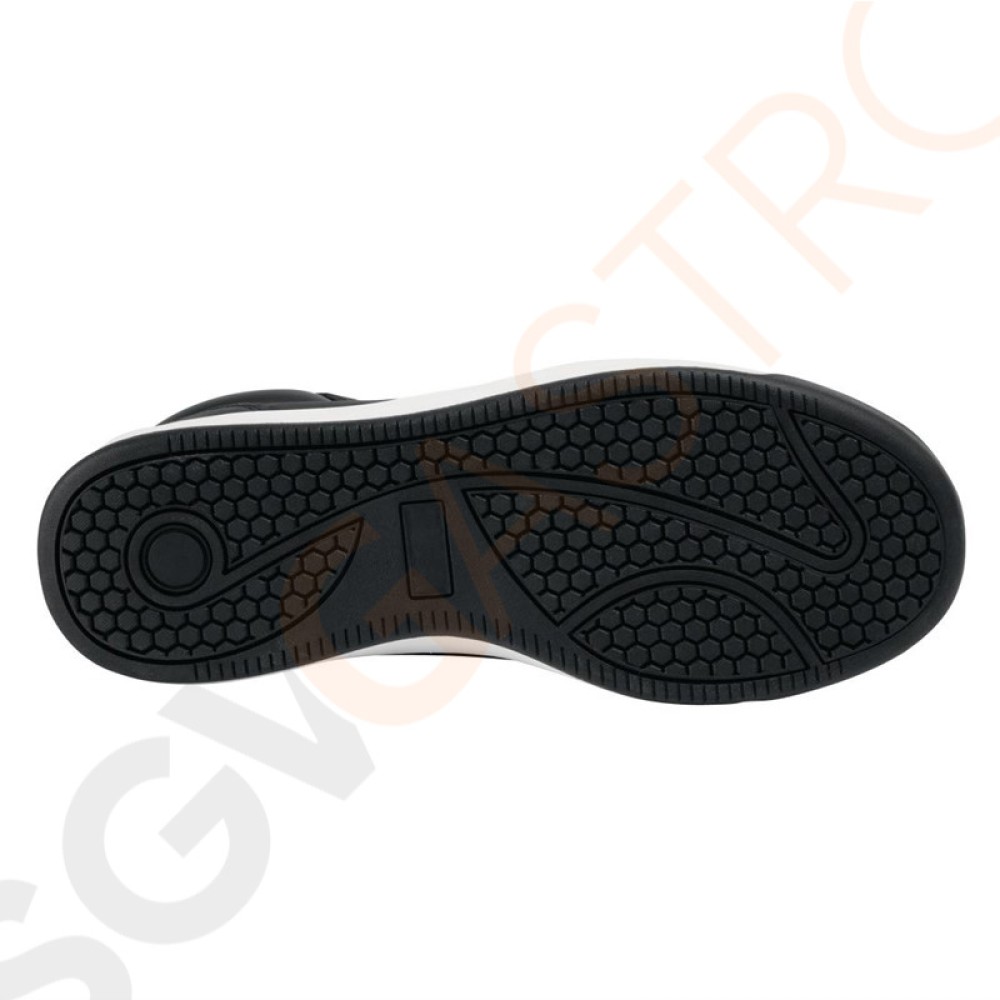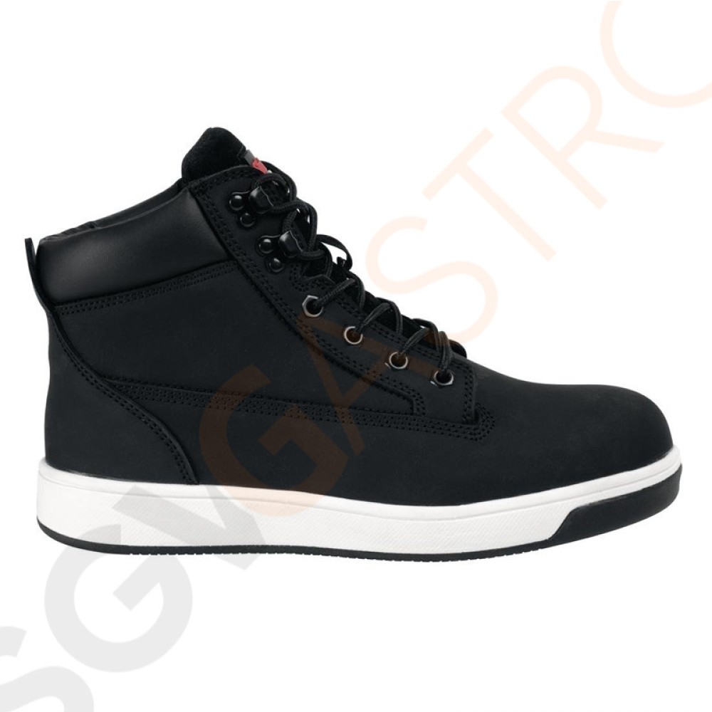 Dank der kontrastierenden Sohle sehen diese Sicherheitsschuhe sehr modern aus. Ölabstoßende, rutschfeste Sohlen und perforierte, vorgeformte Innensohlen sorgen für Atmungsaktivität und Komfort.