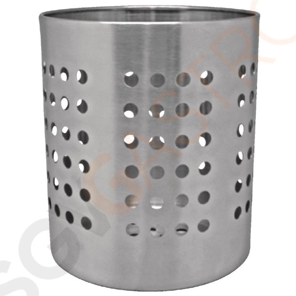 Edelstahl. Ideal zur Aufbewahrung von nassem oder trockenem Besteck. 12(Ø) x 13(H)cm.