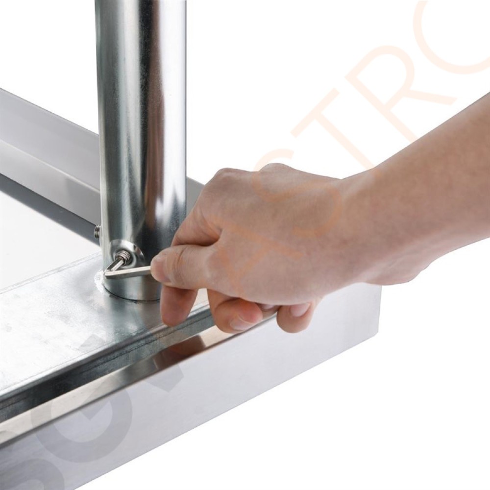Praktisch, zuverlässig und hochwertig. Diese hochwertigen Tische bieten eine hervorragende Grundlage für jede Küche. Höhenverstellbare untere Ablage und Beine aus galvanisiertem Stahl.